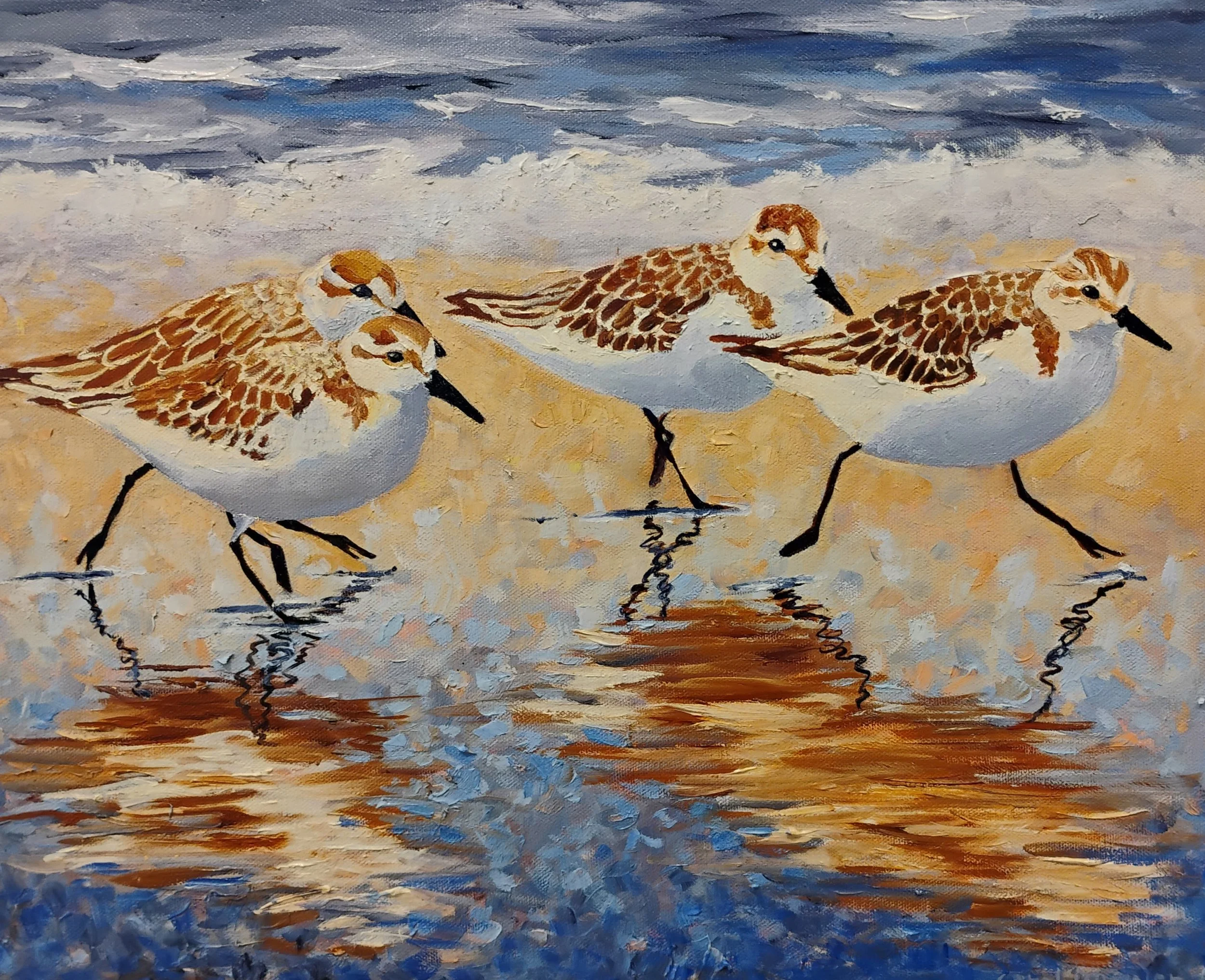 A woman called me about a commission. She knew my work through her parents and she wanted a sanderlings painting. She told me she was preparing to have IVF treatment and wanted something positive and peaceful to look at. I completed the commission and mailed it to her. I didn’t hear any follow-up until one day at The Fringe Fine Art Gallery her parents paid a visit. Their daughter underwent multiple unsuccessful IVF treatments. She and her husband decided to not pursue further treatment, and yet months later they conceived. Her parents proudly shared photos of their beautiful grandson with me and I couldn’t have been happier for them all. Is it possible a painting can make a tiny difference?